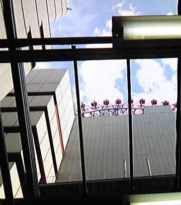ビルの上に観覧車が見えます。